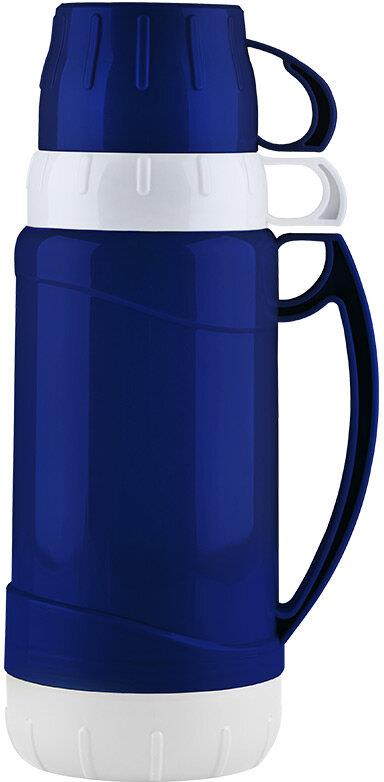 Термос изготовлен из пластмассы, герметичная конструкция препятствует проливанию и подтеканию жидкости. Компактный, имеет легкий вес, удобно брать с собой. Преимущества: - Стеклянная колба; - Две чашки в комплекте; - Окрашенный корпус. Идеально подходит как для горячих, так и для холодных напитков. Может быть использован во время отдыха, на работе, в путешествии. Материал корпуса: пластик, силикон; Материал колбы: стекло; Количество чашек: 2 шт; Объем: 1,8 л; Цвет: синий.