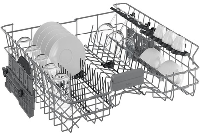 универсальный мотор, кнопочное управление, 5 программ, 15 комплектов, 3-я корзина, регулировка верхней корзины по высоте, конденсационная сушка, расход воды 9,9 л., уровень шума 44 дБ, частичная защита от протечек WaterSafe, автоматическое открывание дверцы, черный