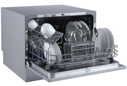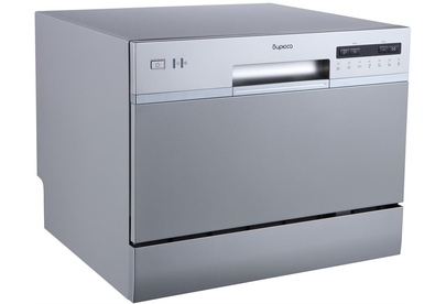 Компактная настольная посудомоечная машина расчитана на 6 комплектов. Отсрочка запуска 1-24ч. LED-дисплей. LED-индикация. Класс А+. 7 программ: интенсив, ECO, обычная, стекло, 90 минут, быстрая, детская посуда. Расход воды за цикл 6л. Энергопотребление за цикл 0,23 кВт*ч. Габариты ВхШхГ: 43,8x55x50 см.