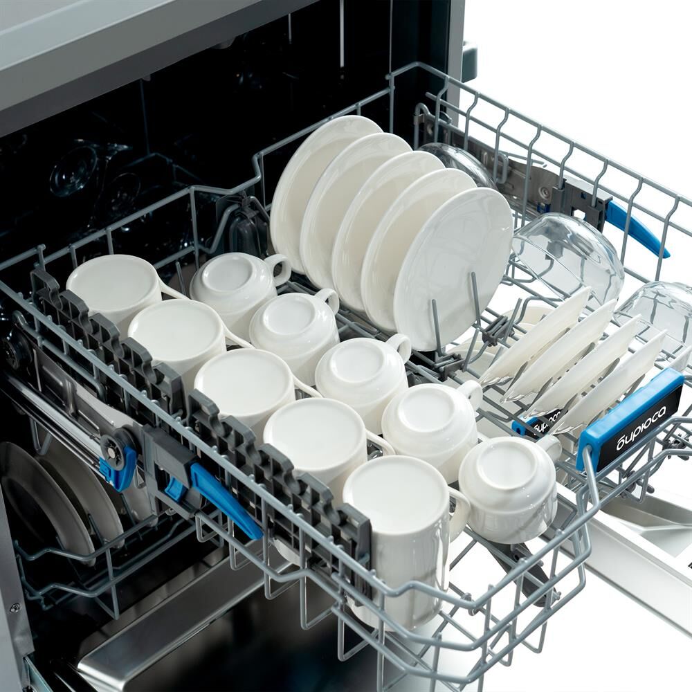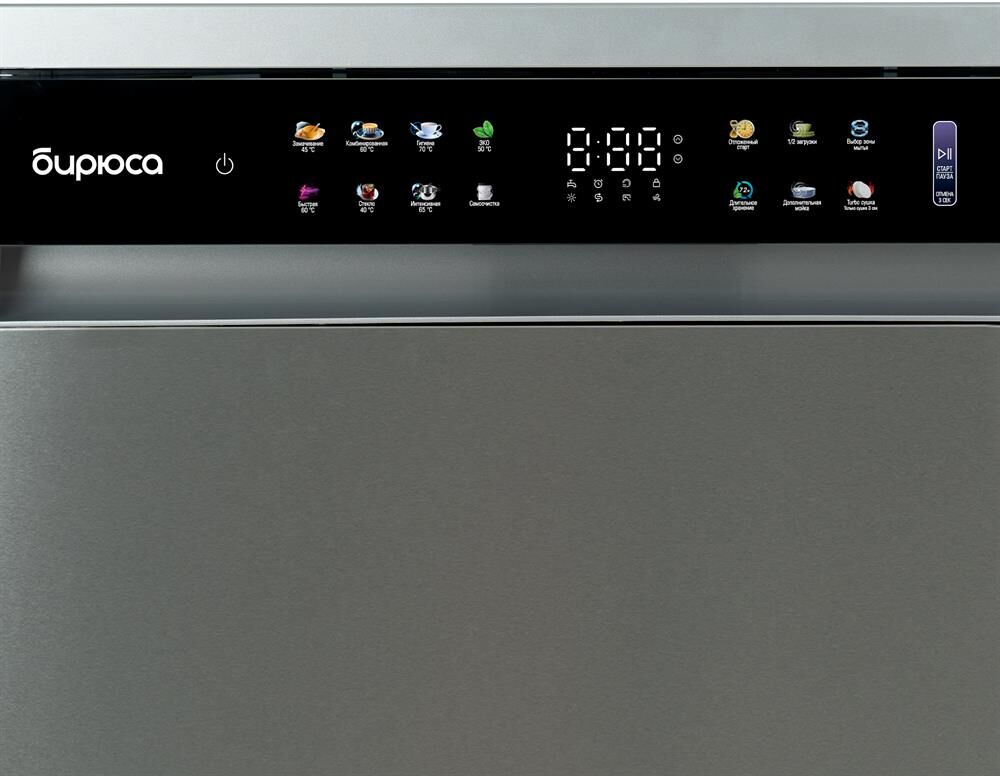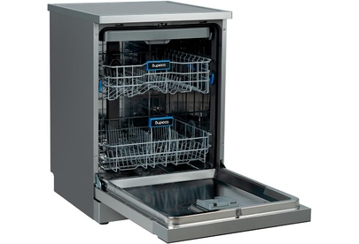 Инверторная полноразмерная посудомоечная машина с цветным сенсорным дисплеем • цвет Нержавеющая сталь • вместимость 15 комплектов посуды • габариты 84,5x59,8x59,8 см • расход воды - 10 л • энергопотребление за цикл — 0,65 кВт*ч • 8 программ • автооткрывание дверцы • отсрочка запуска - 1-24ч • корзины — 3 шт