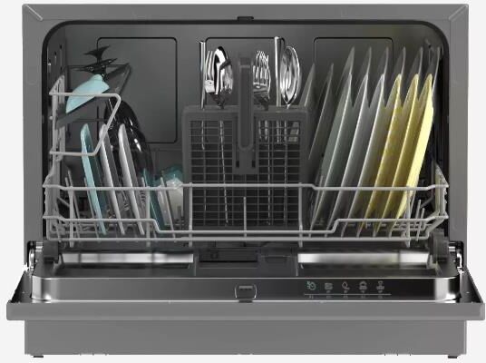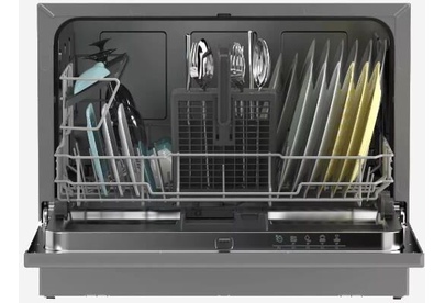 (ВxШxГ)44.3 х 55 х 50.1см.Цвет серебро.Загрузка, кол-во комплектов 6. Количество разбрызгивателей 1. Отсрочка старта, ч 3 / 6 / 9. Количество уровней разбрызгивания 1. Звуковой сигнал по окончании мойки. Количество программ 5.Класс сушки B Потребление электроэнергии, кВтч/г 174 Параметры расхода воды, л/г 1820 Номинальное напряжение / частота 220-240 В / 50 Гц Мощность подключения 850-1050 Вт Расход воды, л 6.5 Номинальный ток предохранителя 10 A Материал бака Пластиковое дно Уровень шума, дБ 51 Класс энергоэффективности A Подключение к воде Мотор Индукционный Дисплей LED Индикатор соли Индикатор ополаскивателя