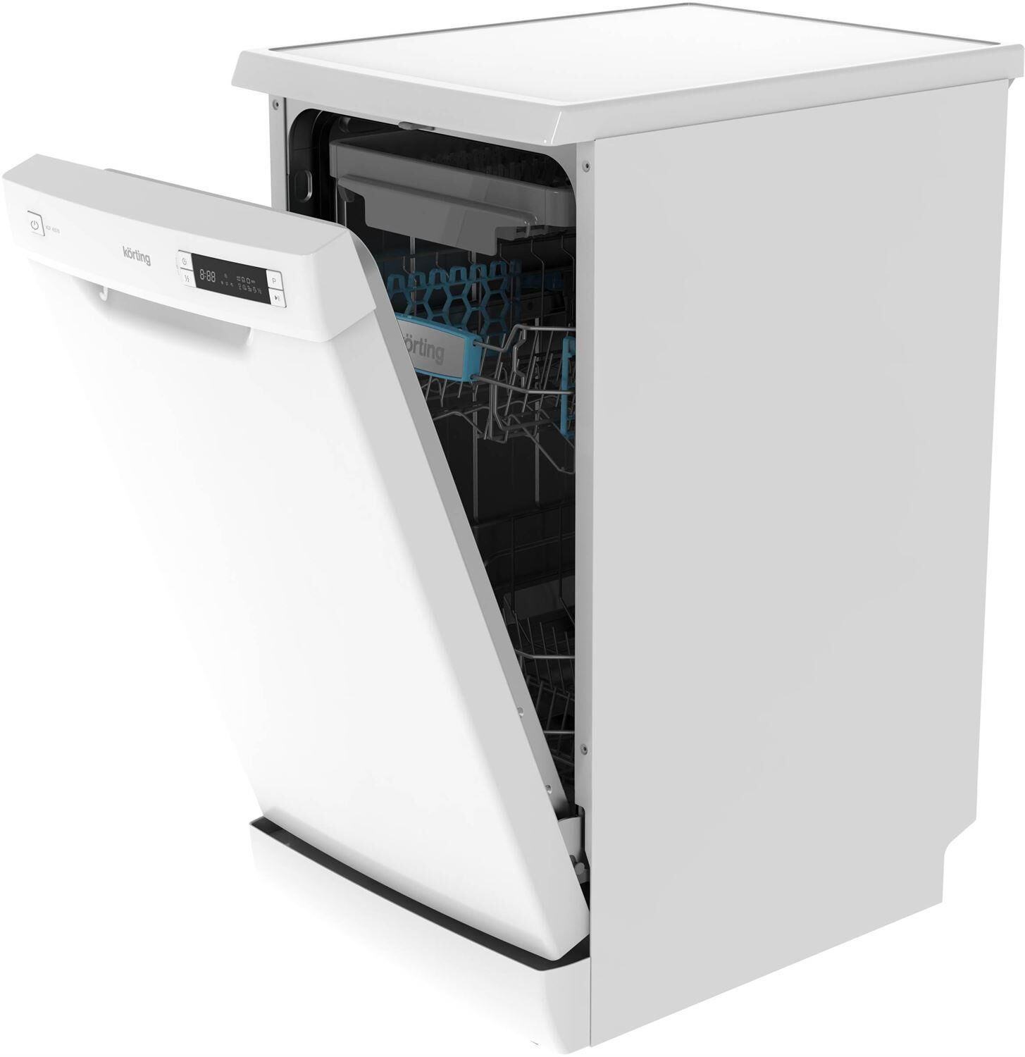 Отдельностоящая посудомоечная машина; Габариты (ВxШхГ): 84,5x44,8x60; Электронное управление; Дисплей с LED индикацией выбранной программы; 8 программ; 10 комплектов; Автоматическая программа; Третья корзина для столовых приборов и мелкой посуды; Функция