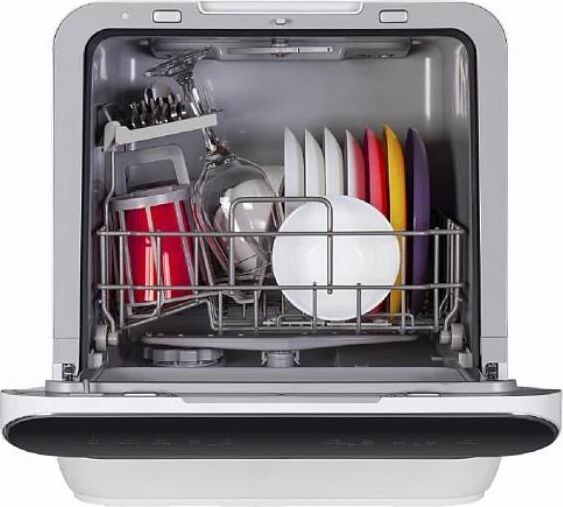 Компактная посудомоечная машина. Количество комплектов 3. Сушка конденсационная. Габариты В/Ш/Г 46,5/42/43,5 см. Цвет белый. Элементы управления сенсорные. Дисплей цифровой Cold White. Количество программ 7. Количество температурных режимов 7. Отсрочка старта 1-24 часа. Количество корзин для посуды 14. Корзина для столовых приборов мобильная. Полка для чашек. Максимальный расход воды за цикл, 6л. Класс энергопотребления А+. Уровень шума, 58Дб. Вес 14,3кг.