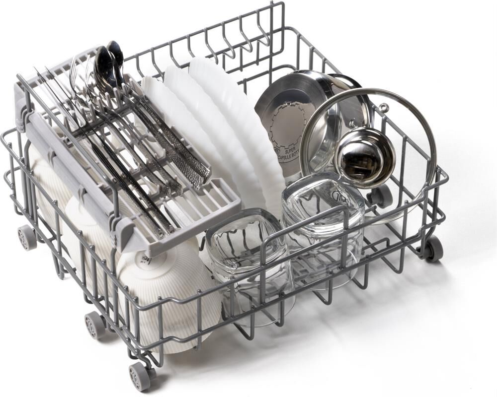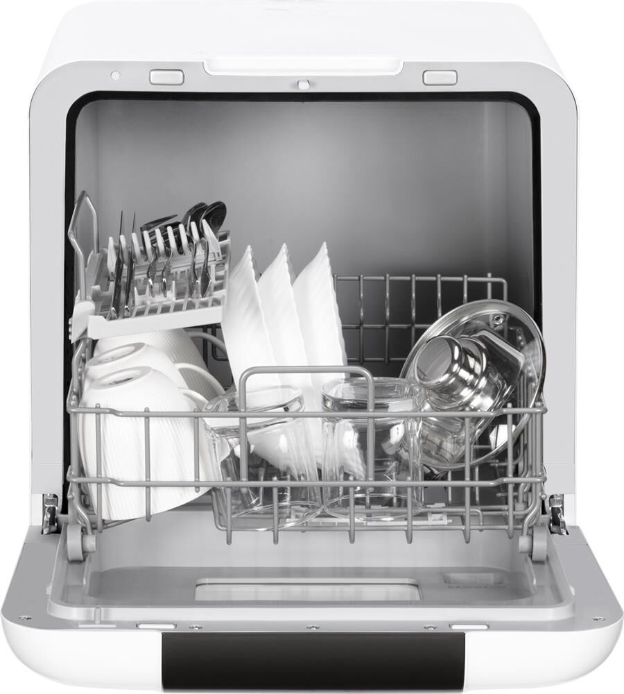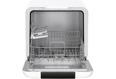 Тип посудомоечной машины: компактная. Тип сушки: турбосушка. Загрузка, комплектов посуды: 3. Класс энергопотребления: A. Класс мойки: A. Класс сушки: B. Тип управления: электронное. Максимальный уровень шума: 58. Максимальный расход воды: 6. Количество температурных режимов: 7. Количество программ мойки: 7. Вес (нетто): 14.5. Максимальная потребляемая мощность: 860. Программы: Hygiene 72°, Интенсивная, ЭКО, Стекло, 58 минут, Быстрая, Самоочистка. Отсрочка запуска: 24. Количество корзин: 1. Длина сетевого кабеля: 150. Особенности: Возможность работы без подключения к водопроводу. Автоматическое открывание дверцы.. Габариты упаковки (ед) ДхШхВ: 0.55x0.536x0.525. Вес упаковки (ед): 17.5. Тип установки: настольная. Минимальное время отсрочки запуска: 1. Гарантия: 12 мес.. Размеры (ШхВхГ): 42х46.5х43.5 см. Цвет: белый/черный. Особенности конструкции: дисплей. Режимы и программы: деликатная программа, интенсивная мойка, стандартная программа, экономичная мойка, экспресс-программа. Дополнительные особенности: исполь