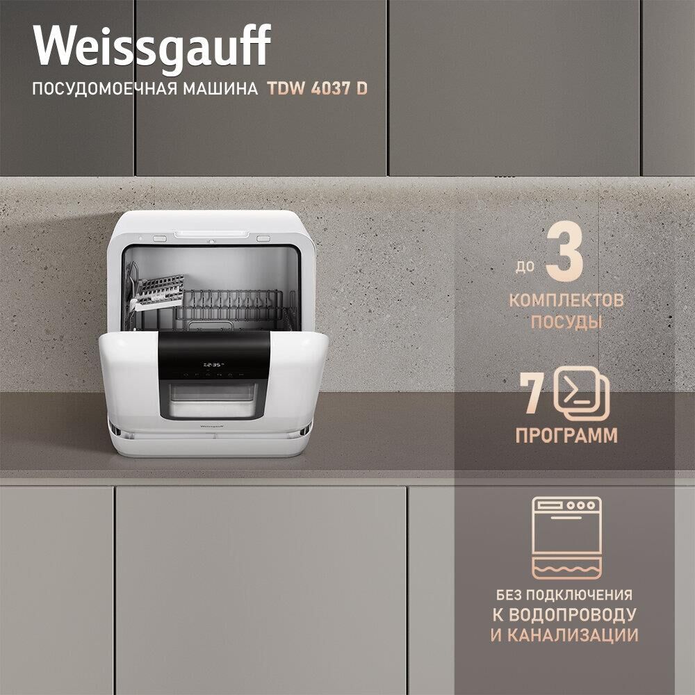 Машина посудомоечная WEISSGAUFF Посудомоечная машина TDW 4037 D, компактная, настольная, 42см, загрузка 3 комплектов, бел
