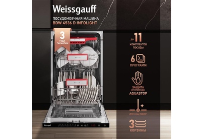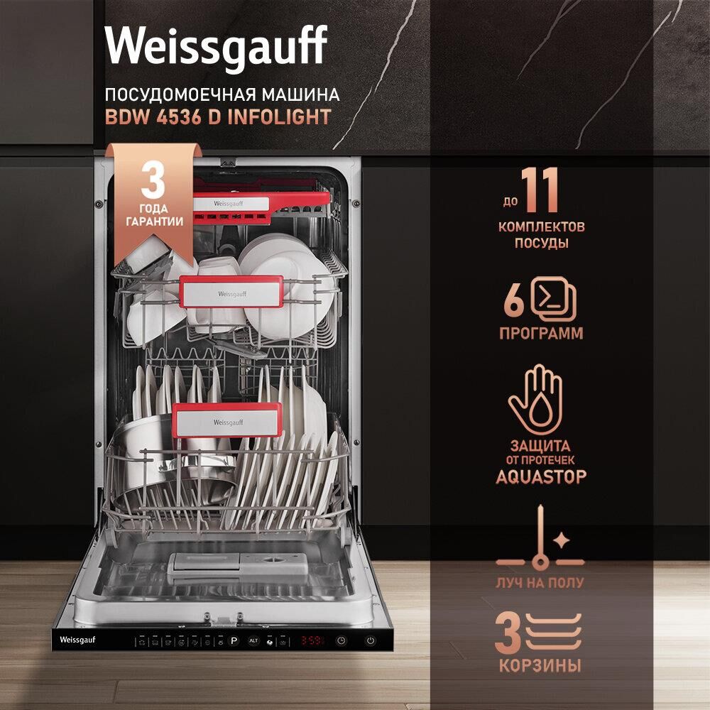 Машина посудомоечная WEISSGAUFF Встраиваемая посудомоечная машина BDW 4536 D Infolight, узкая, ширина 44.8см, полновстраи
