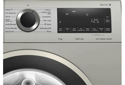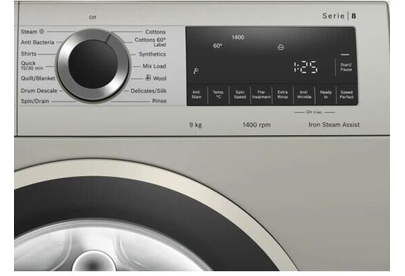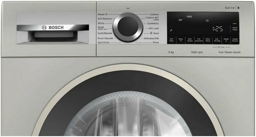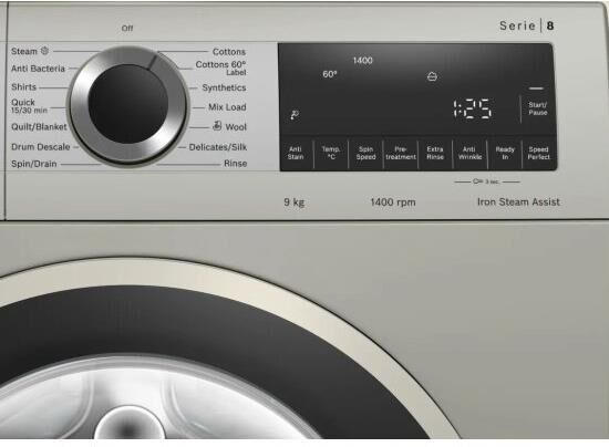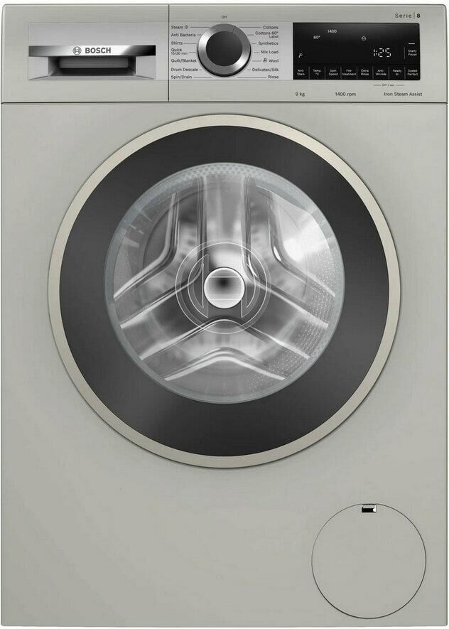 Тип загрузки: фронтальная. Максимальная загрузка: 9. Максимальная скорость отжима: 1400. Тип управления: электронное. Класс стирки: A. Класс отжима: B. Класс энергопотребления: A+++. Цвет: серебристый. Дополнительно: Панель управления на иностранном языке, в комплекте есть наклейки с панелью управления на английском.. Уровень шума при стирке: 50. Уровень шума при отжиме: 72. Потребляемая мощность: 2200. Расход воды: 53. Количество программ: 14. Описание программ: Хлопок / Хлопок Эко Синтетика Смешанное белье Деликатное белье / Тонкое белье / Шелк / Бережный уход Шерсть / Ручная стирка Рубашки / Блузы Пуховое одеяло Супер 15/30 Антиаллергенная / AllergyPlus / Чувствительная Очистка барабана. Тип защиты от протечек: полная (корпус + шланг для заливки воды). Вес (нетто): 70. Габариты упаковки (ед) ДхШхВ: 0.676x0.645x0.871. Вес упаковки (ед): 73. Глубина с учетом выступающих элементов: 63.3. Направление открывания люка: влево. Технология защиты от протечек: AquaStop. Инверторный мотор: есть. Язык панели управлени
