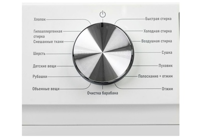выбор скорости отжима, контроль баланса, очистка барабана, сигнал окончания стирки