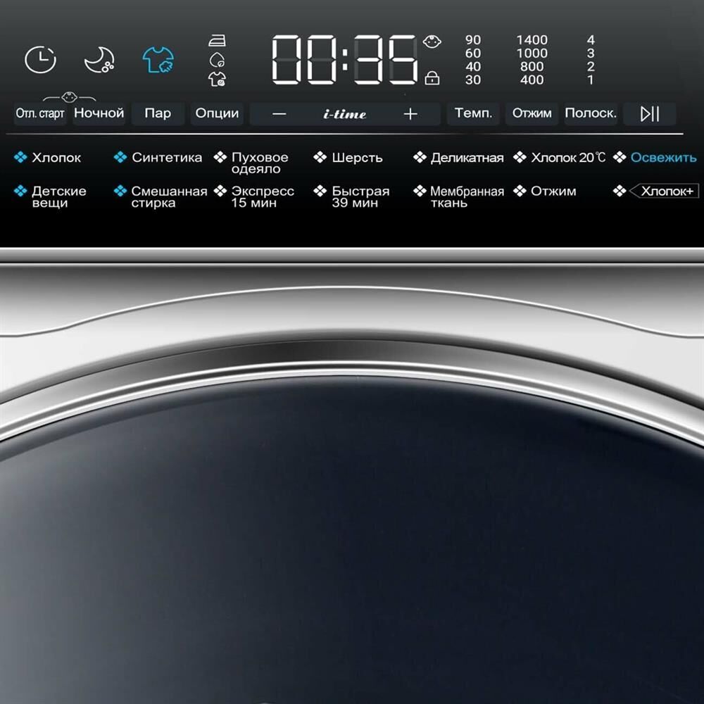 Тип загрузки: фронтальная. Максимальная загрузка: 10. Максимальная скорость отжима: 1400. Диаметр загрузочного люка: 63.1. Тип управления: электронное. Класс стирки: A. Класс отжима: B. Класс энергопотребления: A+++. Цвет: белый. Регулируемая скорость отжима: 0/400/800/1000/1400. Уровень шума при стирке: 55. Уровень шума при отжиме: 74. Потребляемая мощность: 2000. Расход воды: 49. Количество программ: 14. Описание программ: Освежить, Быстрая стирка 39 мин, Синтетика, Смешанные ткани, Деликатная стирка, Шерсть, Детские вещи, Экспресс-стирка 15 мин, Отжим, Хлопок, Хлопок+, Хлопок 20С, Одеяла, Мембранная ткань. Описание режимов: Дополнительное полоскание, Стирка с паром, Автовзвешивание. Цвет люка: черный. Вес (нетто): 86. Максимальное время отсрочки старта: 24. Обработка паром: есть. Габариты упаковки (ед) ДхШхВ: 0.79x0.66x1.1. Вес упаковки (ед): 106. Страна производства: Китай. Глубина с учетом выступающих элементов: 57.6. Направление открывания люка: влево. Инверторный мотор: есть. Частота электросети: 50 Гц