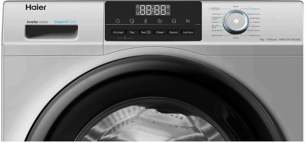 Машина стиральная фронтальная HAIER Стиральная машина HW90-BP14929BS, с фронтальной загрузкой, с паром, 9кг, 1400об/мин, инверторн