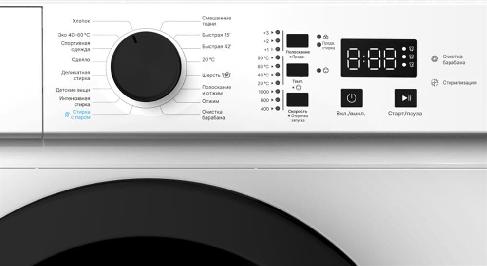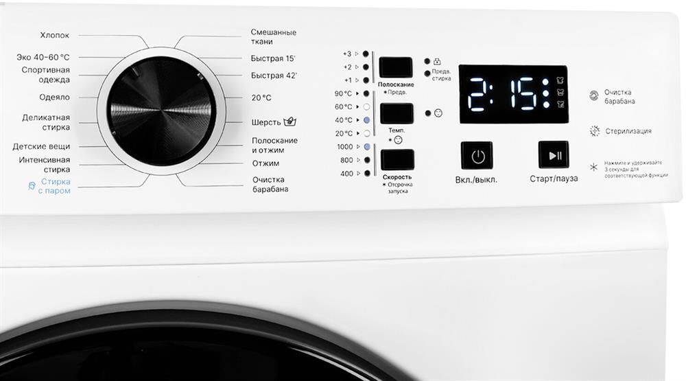 Стиральная машина с функцией стирка паром. Максимальная загрузка: 6 кг; Максимальная скорость отжима: 1000 об/мин; 16 программ стирки ( Смешанные ткани; Быстрая 15’; Быстрая 42’; Деликатная стирка; Одеяло; Детские вещи; Полоскание + отжим; Отжим; ЭКО 40–6