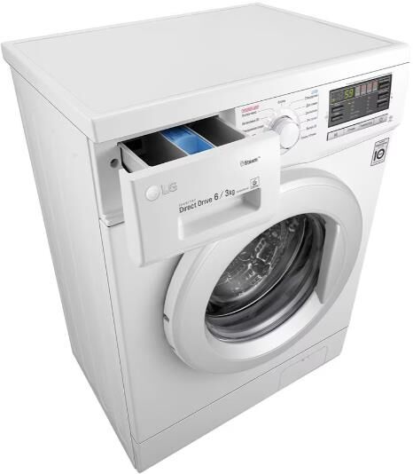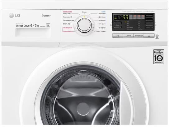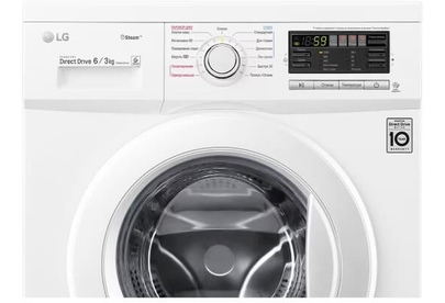 Габариты (ШхВхГ), см: 60х85х44; Цвет корпуса: Белый; Максимальная загрузка при стирке, кг: 6; Максимальная загрузка при сушке, кг: 3; Тип дисплея: Широкий LED; Таймер отсрочки; Индикатор блокировки двери; Основная технология: Inverter Direct Drive; Технология: Smart Diagnosis™; Инверторный мотор с прямым приводом; Технология "6 движений заботы"; Функция сушки; Автоперезапуск; Автовзвешивание; Регулирующиеся опоры, мм: 10; Пузырьковая поверхность барабана; Контроль пенообразования; Программы: Гипоаллергенная; Одежда малыша; Хлопок; Повседневная; Интенсивная; Быcтpо 30; Пoлocкание+Отжим; Шерсть; Класс энергоэффективности: D; Расход электроэнергии, кВт*ч: 6.30; Расход электроэнергии на стирку, кВт*ч: 1.02; Энергопотребление при стирке, отжиме и сушке за полный рабочий цикл, кВт*ч/цикл: 6.30; Энергопотребление только при стирке и отжиме за цикл стирки, кВт*ч/цикл: 1.02; Расход воды (общий), л: 165