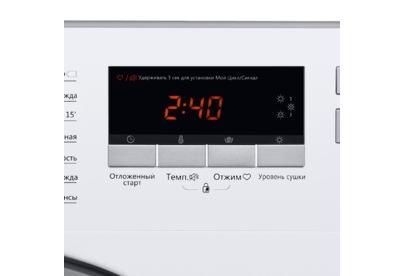 отсрочка старта выбор скорости отжима предварительная стирка оставшееся время до завершения стирки выбор температуры