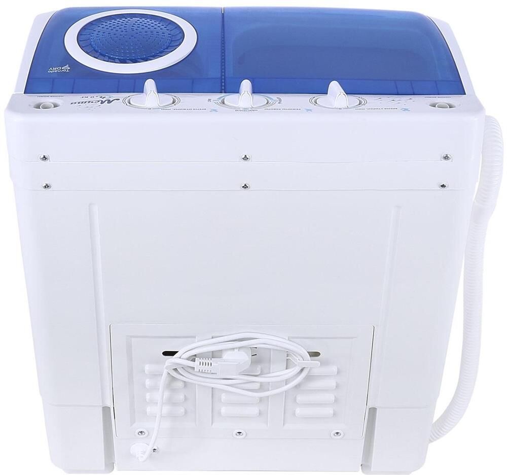 Система TornadoDry (воздушная сушка белья)! Загрузка для стирки 4кг; загрузка для отжима 2кг; помпа; мощность мотора (стирка/отжим) 250/130Вт; отжим 1350 об/мин; таймер стирки до 15 мин; таймер отжим до 5 мин; габариты изделия 600х380х630 мм; вес 10,75 кг