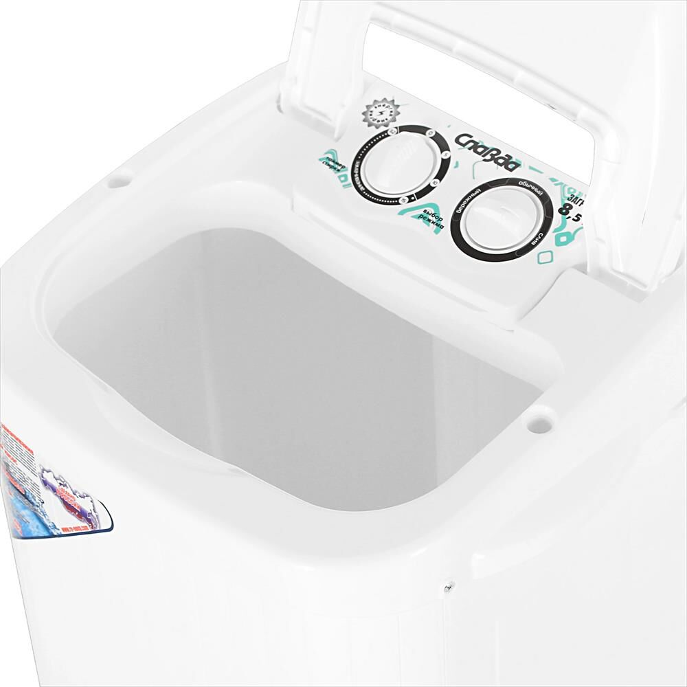 (ШхГхВ) 53х44х87,0см.Белый, крышка глухая белая Тип активаторный Загрузка вертикальная Загрузка сухого белья в бак стирки, до 8.5кг Количество программ стирки 2 Таймер стирки 15мин Двигатель повышенной мощности Материал корпуса полипропилен Класс безопасности IP54 Фильтр для сбора ворса и пуха Максимальная потребляемая мощность (Вт)360