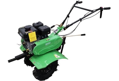 "Мощность - 8.0 л.с Двигатель- 4-х тактный бензиновый Кол-во скоростей-3 вперед -1 назад Передача- ремень + цепь Редуктор чугунный Регулировка руля - по высоте Вал отбора мощности -да Сцепка - Совместима с мотоблоками Ока/ Нева/ Каскад/ Диаметр колес - 4,00-8"" Ширина обработки-800 мм Фрезы Pubert 24шт(3группы/4шт) С коннектором"