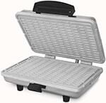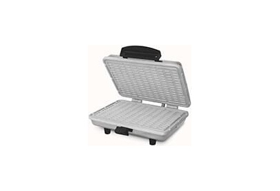 Тип - электровафельница Характеристики: Мощность: 800 Вт Тип вафель: прямоугольные тонкие Количество вафель: 1 шт Теплоизолированные ручки Материал корпуса: металл Антипригарное покрытие Длина сетевого шнура: 1.5м Цвет: серебристый (матовый)