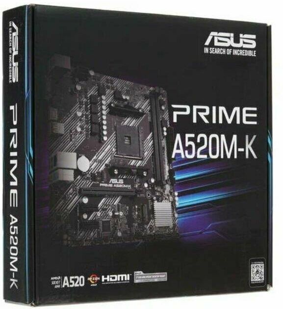 Материнская плата Asus PRIME A520M-K RTL Soc-AM4 AMD A520 2xDDR4 mATX AC`97 8ch(7.1) GbLAN RAID+VGA+DVI+HDMI