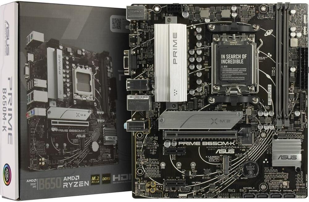 Материнская плата ASUS PRIME B650M-K (Socket AM5, mATX, 2xDDR5(96GB), VGA/HDMI 2.1, 1xPCIe 4.0x16/2xPCIe 4.0, 1xLAN (2