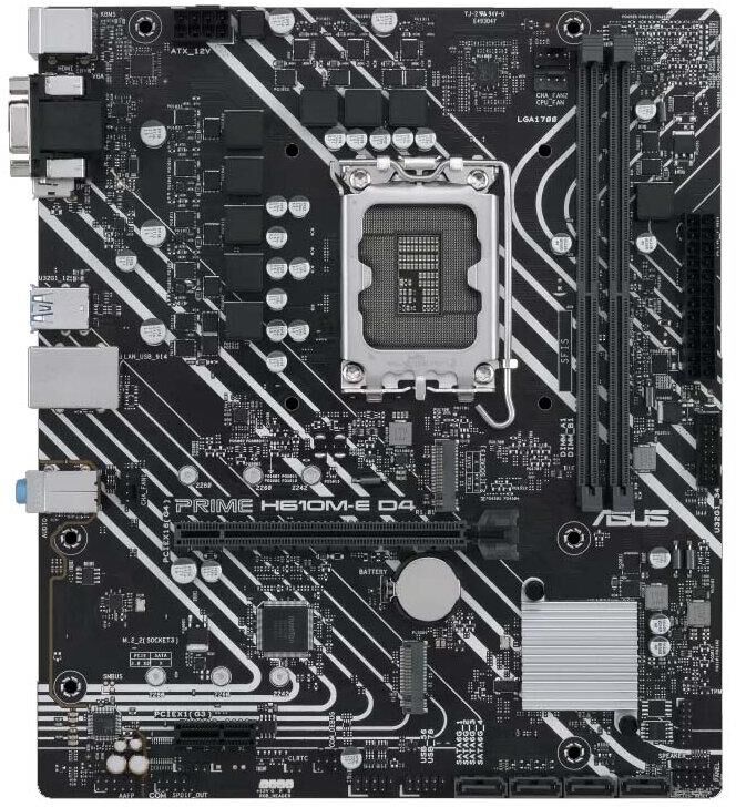 [Материнская плата] ASUS PRIME H610M-E D4-CSM (Socket 1700, mATX, 2xDDR4(64GB), VGA/HDMI/DP, 1xPCIe 4.0x16/1xPCIe 3.0, 1xLAN, 4xSATA 6Gb/s, 2xM.2, 2xUSB 3.2, 2xUSB 2.0, 2xPS/2)