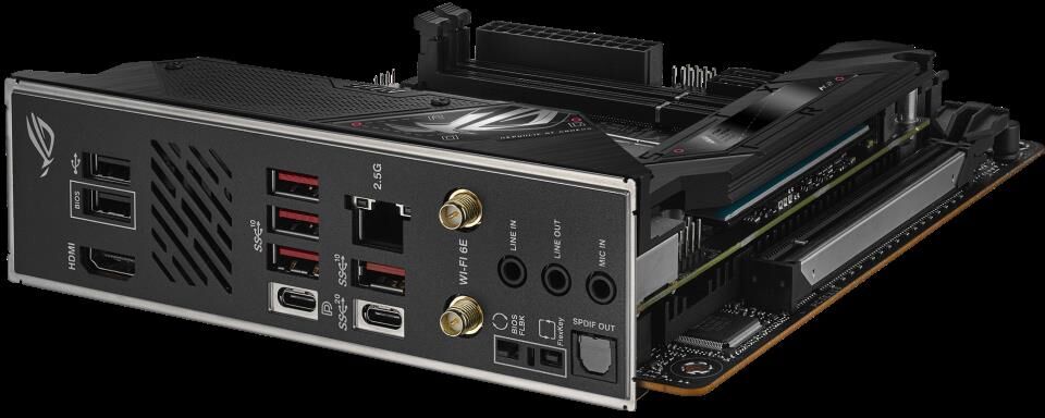 Материнская плата ASUS ROG STRIX B650E-I GAMING WIFI (Socket AM5, mini ITX, 2xDDR5(64GB), HDMI 2.1, 1xPCIe 5.0x16, 1xL