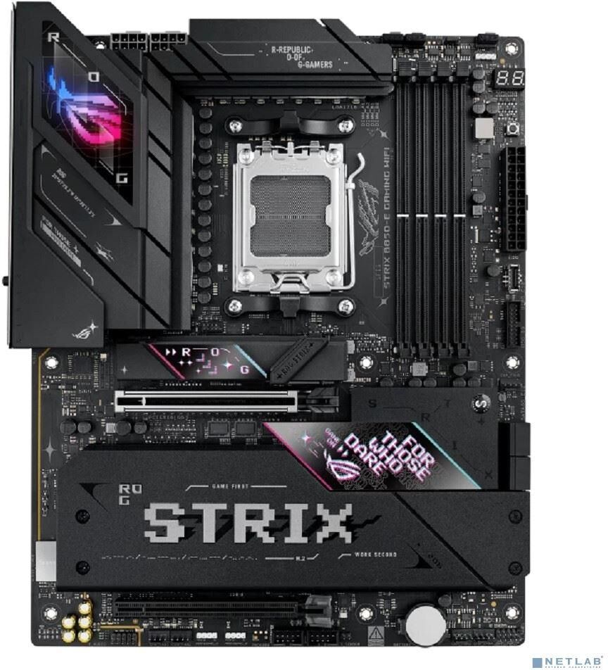[Материнская плата] ASUS ROG STRIX B850-E GAMING WIFI (Socket AM5, ATX, 4xDDR5(256GB), DP/HDMI/USB4, 1xPCIe 5.0x16/1xPCIe 4.0x16, 1xLAN (5GbE), Wi-Fi 7, BT, 4xSATA 6Gb/s, 5xM.2, 2xType-C, 6xUSB 3.2, 4xUSB 2.0)
