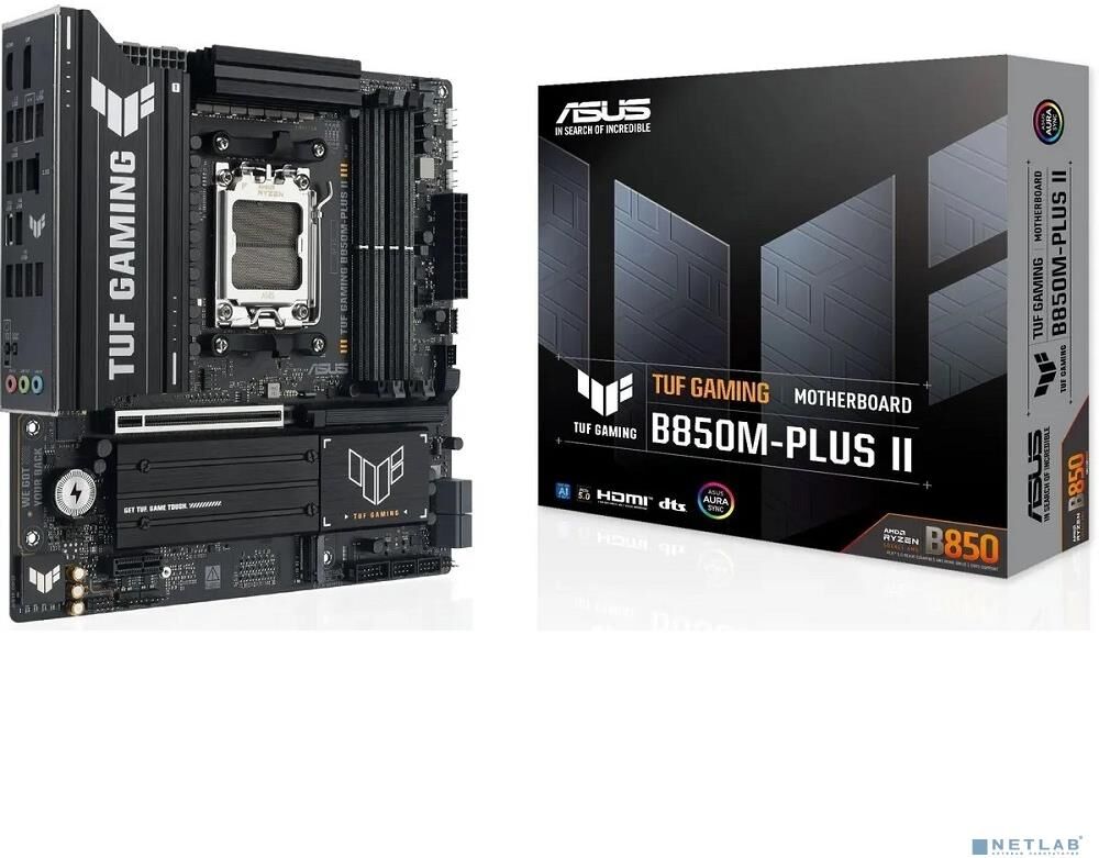 Материнская плата ASUS TUF GAMING B850M-PLUS II (Socket AM5, mATX, 4xDDR5(256GB), DP/HDMI, 1xPCIe 5.0x16/1xPCIe 4.0x16