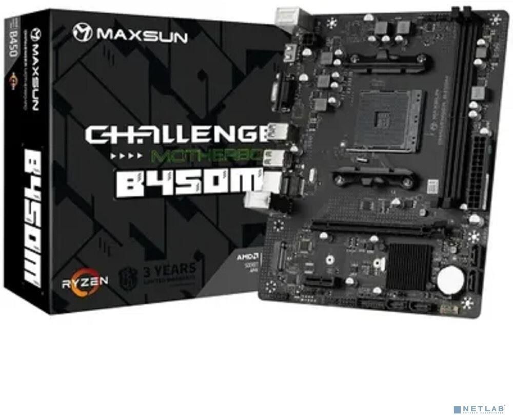 [Материнская плата] MAXSUN MS-Challenger B450M (Socket AM4, mATX, 2*DDR4, VGA/HDMI, 4*SATA3, 1*M.2, 1*PCIEx16/1*PCIEx1, 2*USB2.0, 2*USB 3.2 Gen1, LAN 1*1G, RTL)