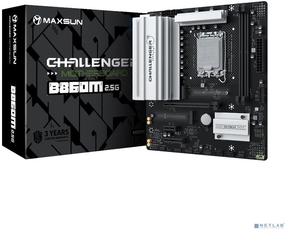 [Материнская плата] MAXSUN MS-Challenger B860M 2.5G (Socket 1851, mATX, 2*DDR5(96Gb), DP/HDMI, 2xSATA3, 2*M.2,1xPCI-Ex16/1xPCI-Ex4/1xPCI-Ex1, 4*USB 2.0, 4*USB 3.2, LAN 1*2.5G, Black, RTL)