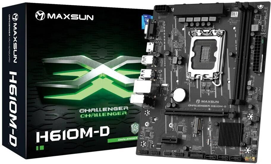 Материнская плата MAXSUN MS-Challenger H610M-D V1/V2 (Socket 1700, mATX, 2*DDR4, VGA/HDMI, 3*SATA3, 1*M.2, 1*PCIEx16/1