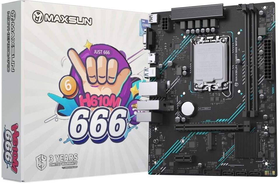 Материнская плата MAXSUN MS-H610M 666 WIFI6 (Socket 1700, mATX, 2*DDR4, VGA/HDMI, 4*SATA3, 1*M.2, 1*PCIEx16/1*PCIEx1,