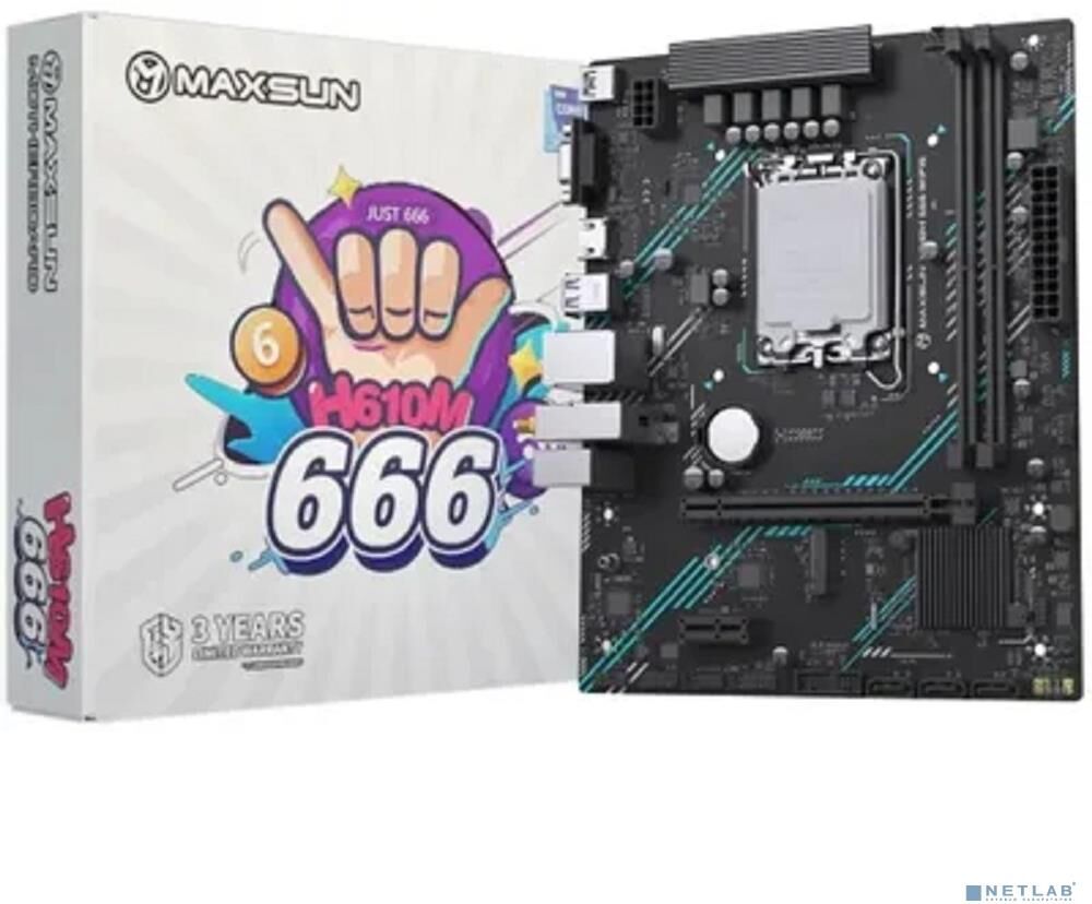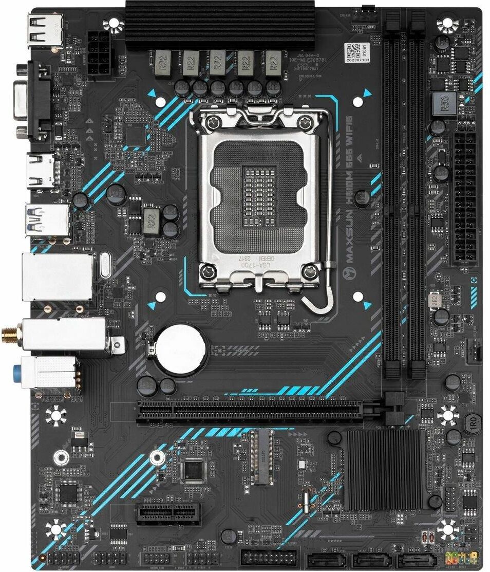 [Материнская плата] MAXSUN MS-H610M 666 WIFI6 D5 (Socket 1700, mATX, 2*DDR5, VGA/HDMI, 4*SATA3, 1*M.2, 1*PCIEx16/1*PCIEx1, 4*USB2.0, 2*USB 3.2 Gen1, LAN 1*1G, Bluetooth, Wi-Fi 802.11ax, RTL)