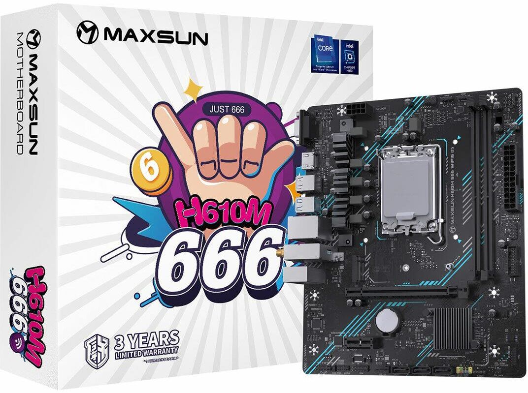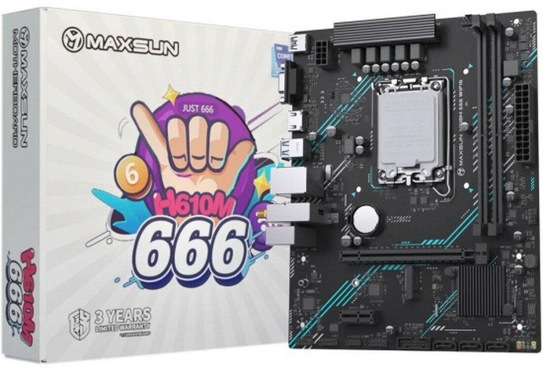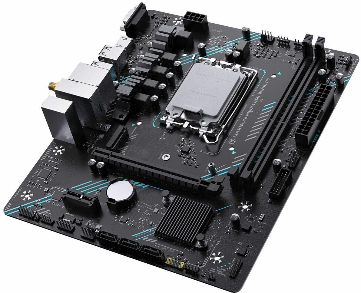 Материнская плата MAXSUN MS-H610M 666 WIFI6 D5 (Socket 1700, mATX, 2*DDR5, VGA/HDMI, 4*SATA3, 1*M.2, 1*PCIEx16/1*PCIEx