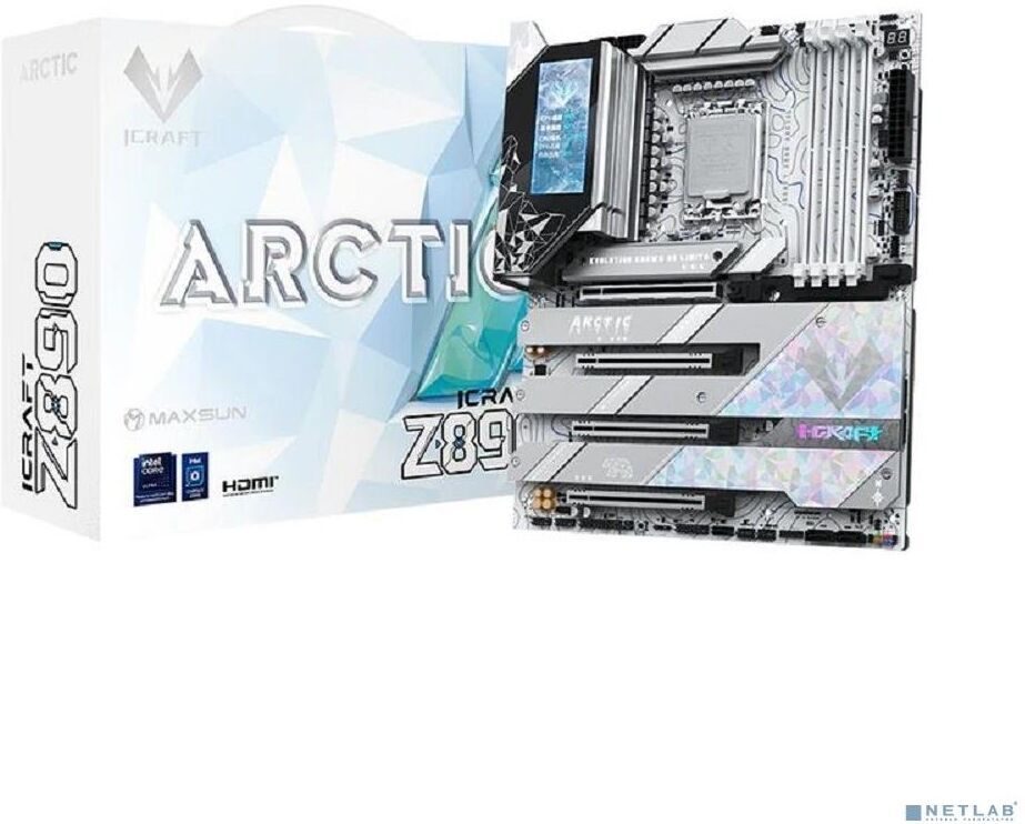 [Материнская плата] MAXSUN MS-iCraft Z890 ARCTIC (Socket 1851, ATX, 4*DDR5(256Gb), DP/HDMI, 4*SATA3, 4*M.2, 4xPCI-Ex16, 2*Type-C, 9*USB 3.1, LAN 1*5G, BT 5.4, Wi-Fi 7, SPDIF, white, RTL)