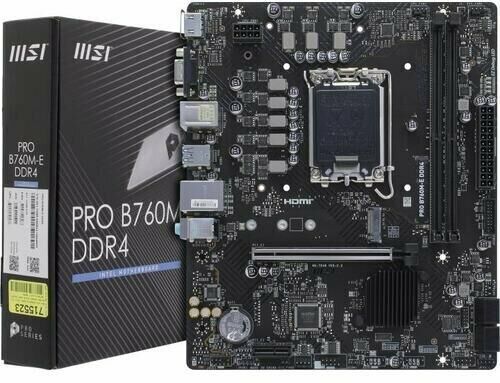 Материнская плата MSI PRO B760M-E DDR4 Soc-1700 Intel B760 2xDDR4 mATX AC`97 8ch(7.1) GbLAN+VGA+HDMI