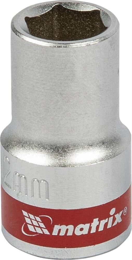 MATRIX Головка торцевая, 12 мм, шестигранная, CrV, под квадрат 1/2, хромированная 13112