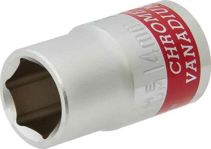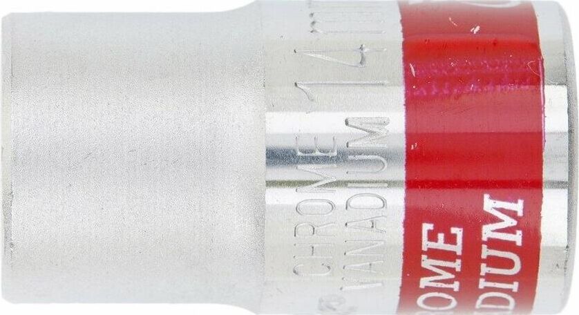 Хромированная торцевая головка Matrix 13114 из стали CrV, размером 14 мм, с 6-гранным профилем и посадочным квадратом 1/2"" — оснастка для слесарного инструмента, предназначенная для монтажа и демонтажа резьбовых соединений. Динамический шестигранный профиль обеспечивает максимальный контакт с головкой крепежа, что уменьшает ее деформацию при высоких нагрузках. Насадка пригодится для проведения монтажных и ремонтных работ дома, на даче или в гараже.ПреимуществаПрочность — оснастка выполнена из хромованадиевой стали, а твердость ее рабочей части составляет 42 HRC.Защита от разрушения — полированное хромоникелевое покрытие предохраняет торцевую головку от образования коррозии.Быстрый поиск насадки среди других инструментов — торцевая головка маркирована красной полосой, на корпус нанесено обозначение типоразмера.
