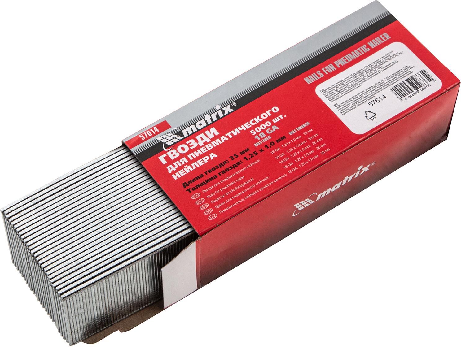 MATRIX Гвозди для пневматического нейлера, длина 35 мм, ширина 1.25 мм, толщина 1 мм, 5000 шт 57614