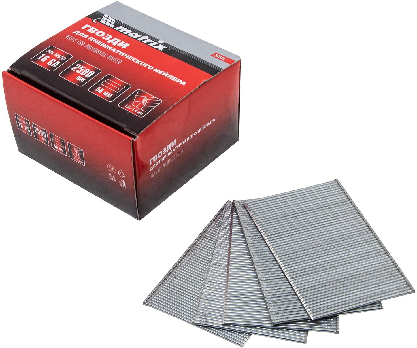 MATRIX Гвозди для пневматического нейлера 16GA, сечение 1.6 х 1.4, длина 50 мм, 2500 шт 57615