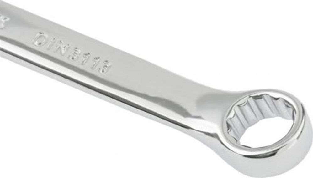 Комбинированный ключ Matrix 15171 размером 26 мм, из стали CrV, с покрытием «полированный хром», пригодится во время ремонтных работ дома или в гараже. С его помощью можно быстро монтировать и демонтировать крепежные элементы. Угол наклона кольцевого зева относительно плоскости инструмента составляет 15°, поэтому ключом удобно работать в труднодоступных местах.ПреимуществаВысокая деформационная стойкость — ключ изготовлен из хромованадиевой стали, а рабочая часть закалена до твердости 45 HRC.Защита от разрушения — полированное хромовое покрытие предотвращает образование коррозии.Аккуратная работа — накидные части с 12-гранным профилем охватывают всю поверхность крепежа, уменьшая риск деформации его граней.