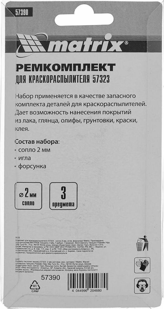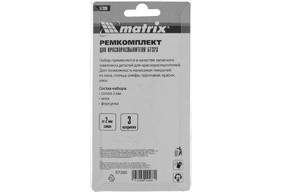 MATRIX Комплект для краскораспылителя 57323 : сопло 2 мм, игла, форсунка 57390