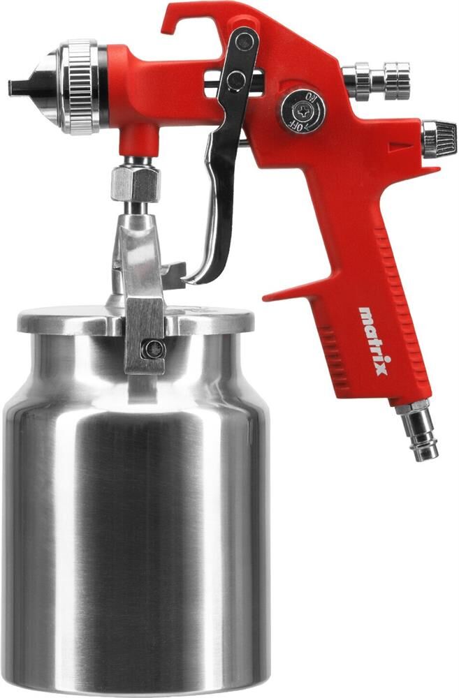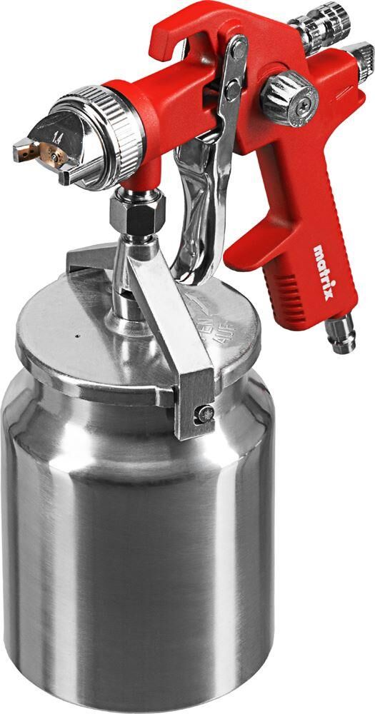 Пневматический краскораспылитель с нижним бачком Matrix 57319 объемом 1 л, с соплом диаметром 1,4 мм, расходует 170-280 л воздуха в минуту и предназначен для выполнения окрасочных работ. Позволяет работать с лакокрасочными материалами разных типов и консистенции. Благодаря технологии HVLP (High Volume Low Pressure, высокий объем, низкое давление) на поверхность переносится до 65% ЛКМ, что обеспечивает высокую производительность и сокращает потери краски. Краскораспылитель пригодится в мастерской, в гараже и в автосервисе.Преимущества Решение широкого спектра задач предусмотрена возможность регулировки давления воздуха, подачи краски, направления и формы факела в зависимости от потребностей пользователя. Прочность и долговечность корпус пистолета и бачок из алюминиевого сплава устойчивы к механическим повреждениям и коррозии. Обработка участков большой площади вместительный бачок обеспечивает длительную работу без дозаправки.