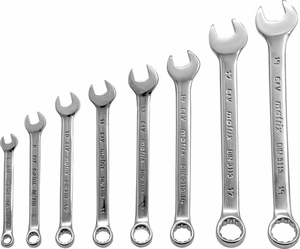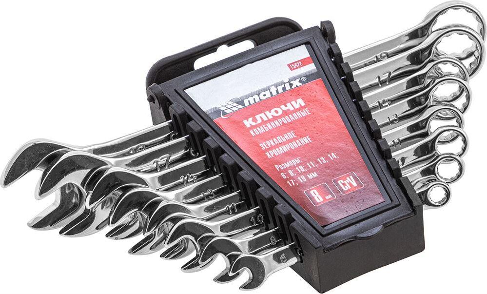 MATRIX Набор ключей комбинированных, 6-19 мм, 8 шт, CrV, полированный хром 15422