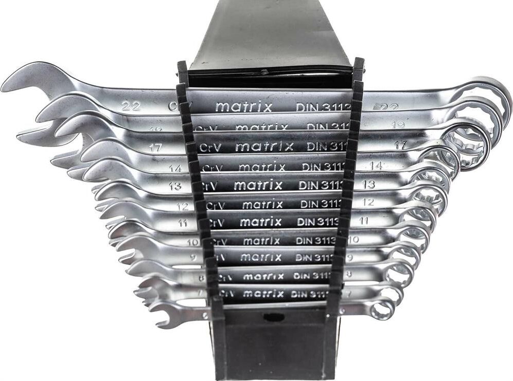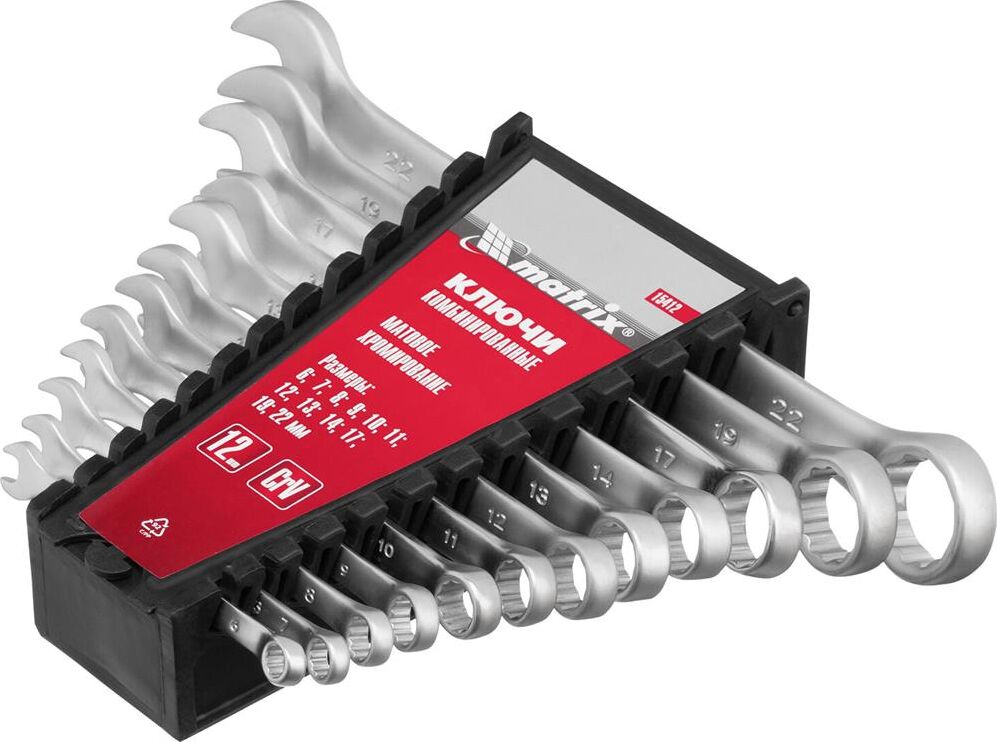 MATRIX Набор ключей комбинированных, 6-22 мм, 12 шт, CrV, матовый хром 15412