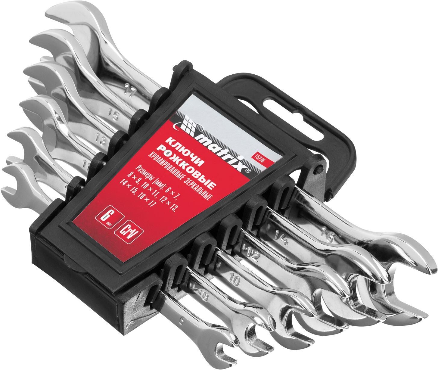 MATRIX Набор ключей рожковых 6 шт, 6-17 мм, CrV, Elliptical, зеркальное хромирование 15236