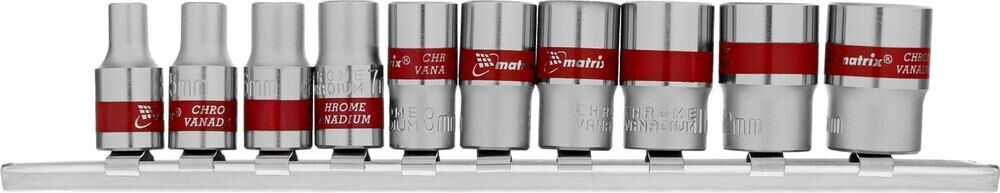 MATRIX Набор торцевых головок, 1/4", 12 гранные, CrV, 4-13мм, 10 штук 13594