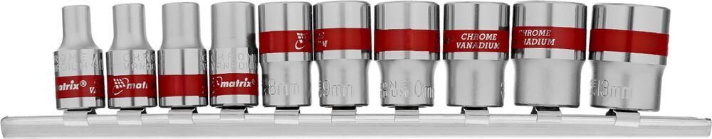 MATRIX Набор универсальных торцевых головок 1/4", Spline, CrV, 4-13мм, 10 штук 13599