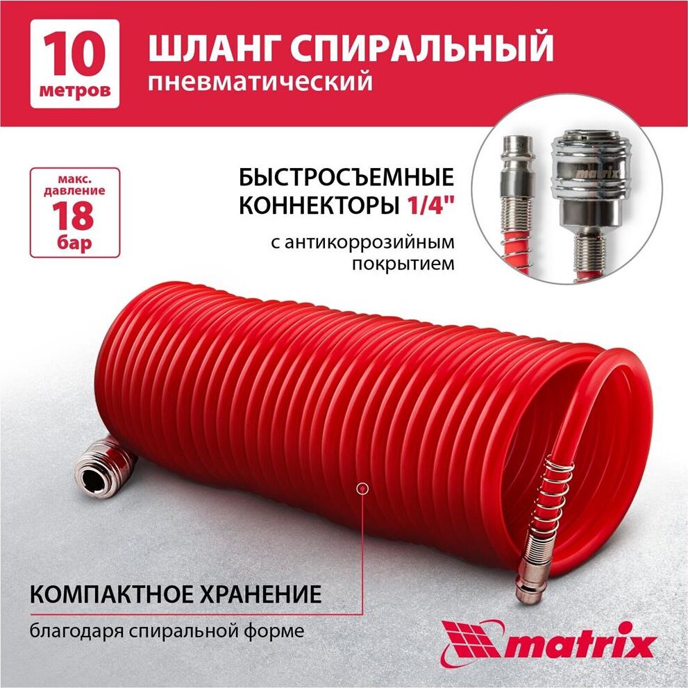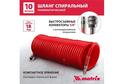 MATRIX Шланг спиральный воздушный, 10 м, с быстросъемными соединениями 57004