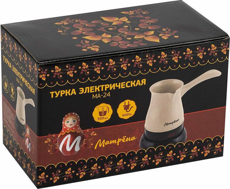 Объем 300 мл. Ненагревающаяся ручка. Световой индикатор работы. Защита от перегрева при работе без воды. Корпус из термостойкого пластика. Закрытый нагревательный элемент из нержавеющей стали. Длина шнура 75 см. Мощность 600 Вт.
