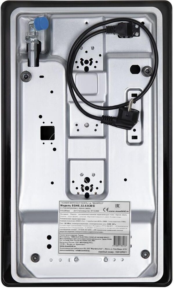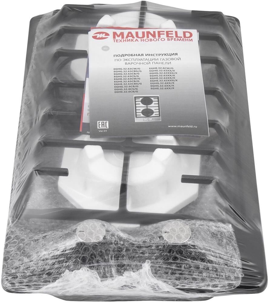 MAUNFELD Газовая варочная панель EGHE.32.63CB/G, 2 конфорки, эмалированная сталь, черный
